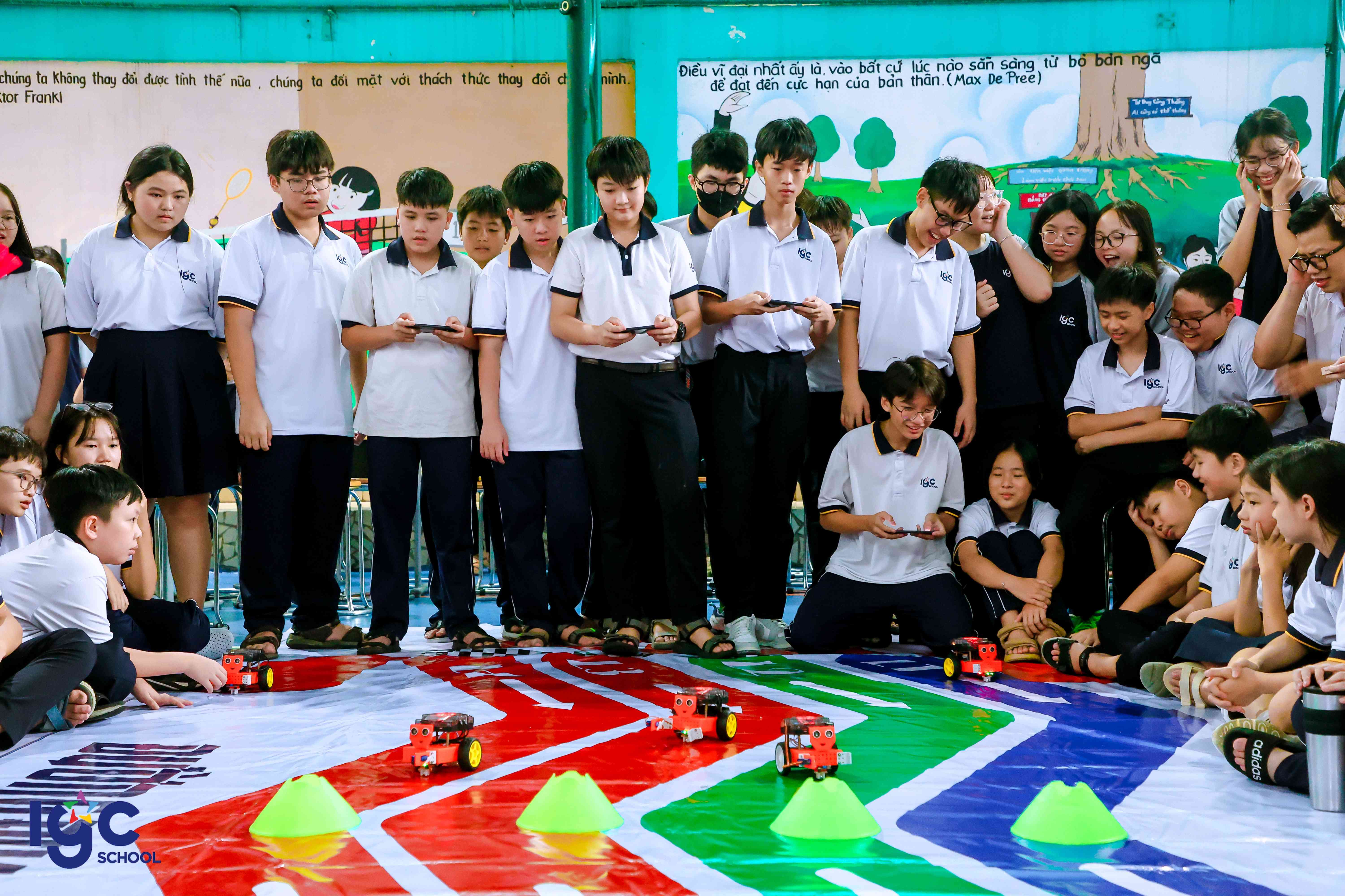 Thông qua các hoạt động sôi nổi, nổi bật như Mini Quiz “AI học đường” , đường đua robot Grobot , trưng bày các sản phẩm “AI trong mắt em”, học sinh được trực tiếp tham gia, trải nghiệm và khám phá trong môi trường học tập tích cực, hiện đại ; từ đó thể hiện ý tưởng, phát huy năng lực cá nhân và tinh thần làm việc nhóm.